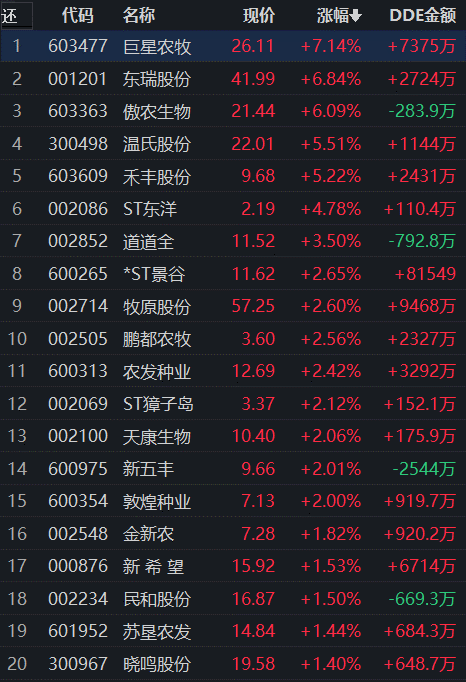 農(nóng)林牧漁行業(yè)領(lǐng)漲
