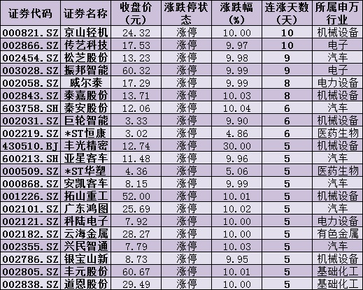 漲停板方面,6月28日,有139只個(gè)股漲停,其中,有22只漲停股,股價(jià)已連續(xù)上漲5個(gè)交易日以上。從行業(yè)方面看,機(jī)械設(shè)備行業(yè)漲停股最多,達(dá)31只,緊隨其后的是電子(17只)、汽車(15只)、基礎(chǔ)化工(11只)、和電力設(shè)備(11只)等行業(yè)。