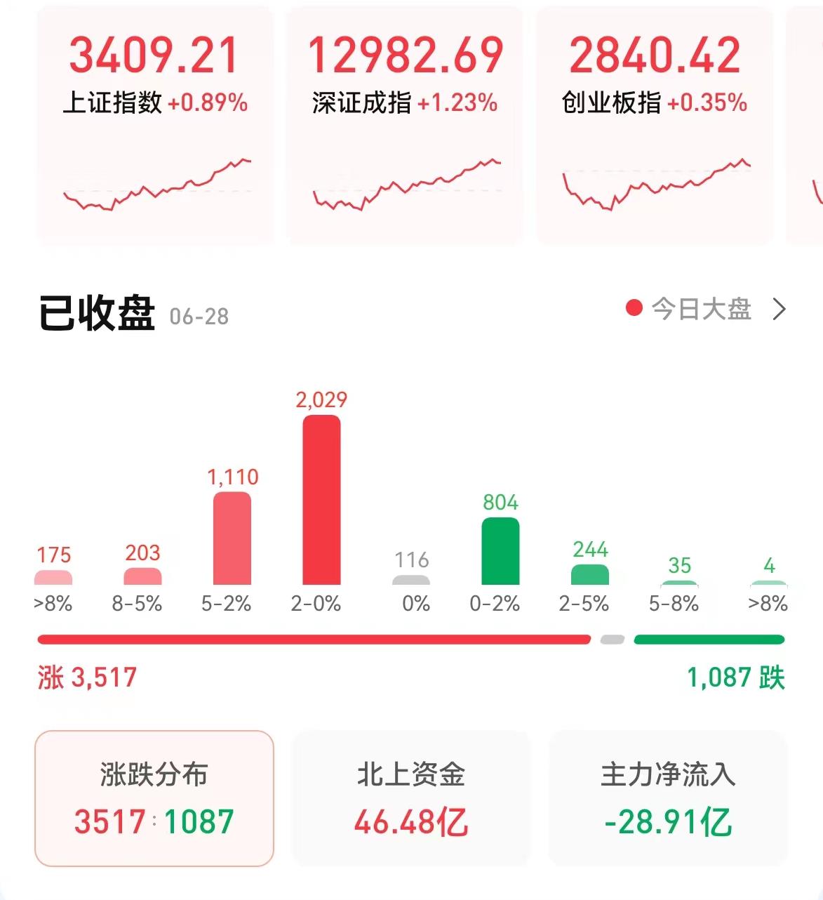 6月28日,A股三大指數(shù)全線飄紅,上證指數(shù)走出日線四連陽,成功站上3400點(diǎn)整數(shù)關(guān)口。兩市合計(jì)成交12213億元,連續(xù)第4個(gè)交易日突破萬億元。北向資金凈買入超46億元。市場(chǎng)熱點(diǎn)紛呈,電子、社會(huì)服務(wù)、交通運(yùn)輸、煤炭等行業(yè)漲幅居前,備受矚目。經(jīng)過2個(gè)月的反彈,A股的上漲行情能否延續(xù)呢?