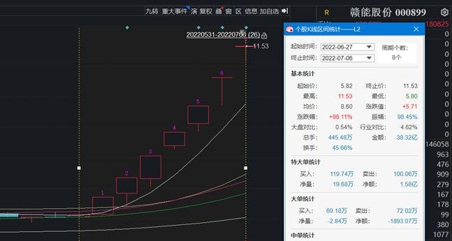 7月6日,贛能股份再度漲停,報收11.53元,自6月27日以來,截至7月6日已連續(xù)8個交易日上漲,累計漲幅達98.11%,最近7個交易日連續(xù)收獲漲停板。