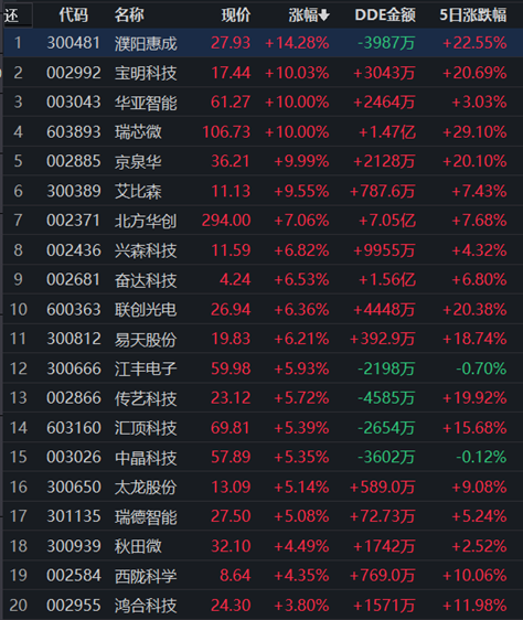 7月6日,電子行業(yè)漲幅居首,達0.58%。行業(yè)288只交易中的個股,有131只上漲,其中,5只個股漲停。