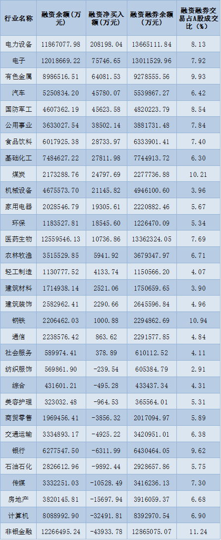 表:7月18日申萬一級行業(yè)兩融交易情況: