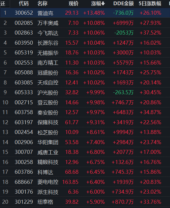 從漲停股最多的汽車零部件行業(yè)看,截至7月19日11:30,行業(yè)交易中的196只個股,有151只上漲,其中,有10只個股漲停,有24只個股漲幅超5%。從資金流向看,汽車零部件行業(yè)今天上午大單資金凈流入額達5.77億元,居各行業(yè)第2位。