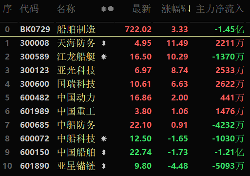 從漲幅居首的船舶制造行業(yè)看,截至8月2日11:30,行業(yè)交易中的10只個股,有7只上漲,其中,有4只個股漲幅超6%。從資金流向看,船舶制造行業(yè)今天上午大單資金凈流入額達-1.45億元。