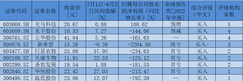 表:最近30日內(nèi),獲機構(gòu)給予“買入”或“增持”等看好評級的養(yǎng)雞股一覽