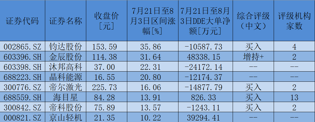 表:7月21日至8月3日,TOPCON電池概念板塊期間累計漲幅超10%個股一覽