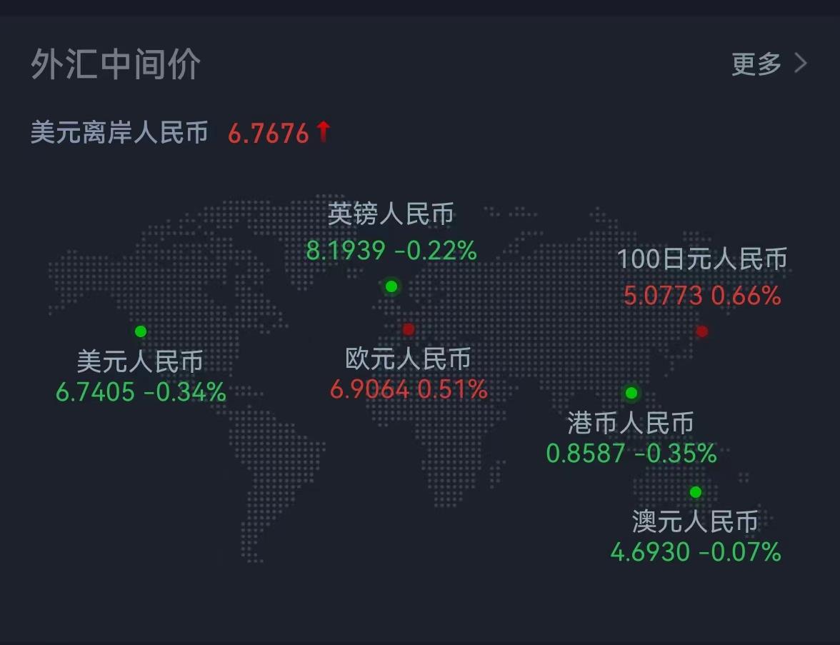 周五,在岸人民幣兌美元16:30收盤(pán)報(bào)6.7507,較上一交易日漲55個(gè)基點(diǎn)。人民幣兌美元中間價(jià)報(bào)6.7405,調(diào)升231個(gè)基點(diǎn),本周累計(jì)調(diào)升32個(gè)基點(diǎn)。