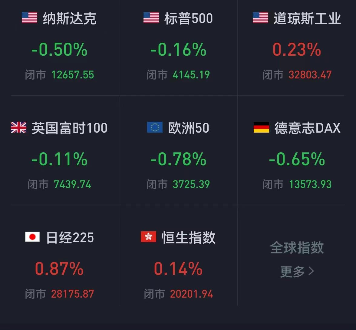 周五,美國(guó)三大股指收盤(pán)漲跌不一。道指漲幅達(dá)0.23%報(bào)32803.47點(diǎn),標(biāo)普500指數(shù)跌幅達(dá)0.16%報(bào)4145.19點(diǎn),納指跌幅達(dá)0.5%報(bào)12657.56點(diǎn)。本周,道指跌幅達(dá)0.13%,標(biāo)普500指數(shù)漲幅達(dá)0.36%,納指漲幅達(dá)2.15%。