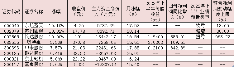 在光伏裝機保持穩(wěn)定增長的背景下,TOPCON電池板塊上市公司業(yè)績表現(xiàn)良好。同花順數據顯示,截至8月10日收盤,鈞達股份、中來股份、海目星、奧特維等4家公司披露了2022年上半年業(yè)績,這4家公司今年上半年均實現(xiàn)歸母凈利潤同比翻番,分別達到885.01%、642.89%、189.84%、109.51%。除此之外,還有7家公司也披露了2022年上半年業(yè)績預告,晶盛機電、天合光能、蘇州固锝、協(xié)鑫集成等4家公司業(yè)績預喜。