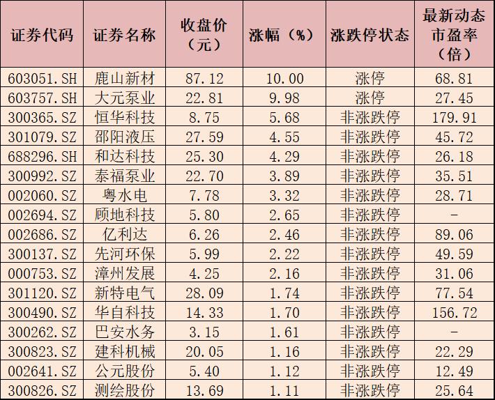 表:8月10日水利板塊內(nèi)漲幅超1%個股一覽