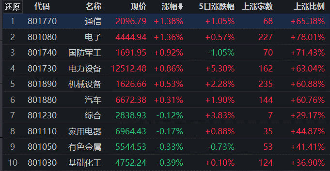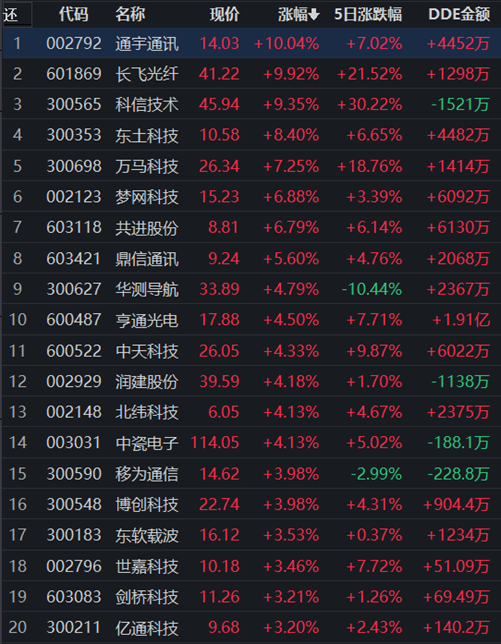 通信行業(yè)領(lǐng)漲
