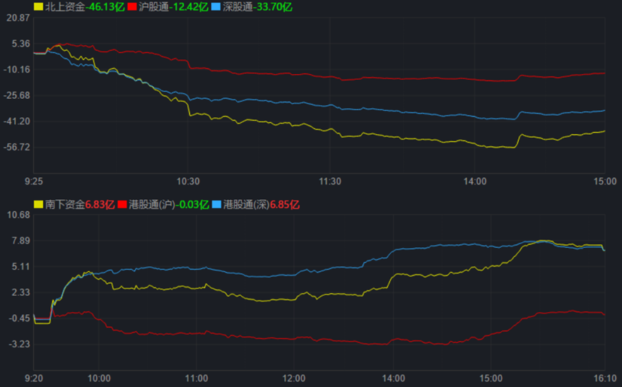 今日A股三大股指表現(xiàn)相對(duì)較弱,出現(xiàn)震蕩回落過(guò)程。截至收盤,上證指數(shù)跌0.46%報(bào)3277.54點(diǎn),深證成指跌0.62%報(bào)12517.32點(diǎn),創(chuàng)業(yè)板指跌0.08%報(bào)2775.82點(diǎn);兩市合計(jì)成交額達(dá)10540.65億元,北向資金凈賣出46.13億元??傮w來(lái)看,個(gè)股漲少跌多。