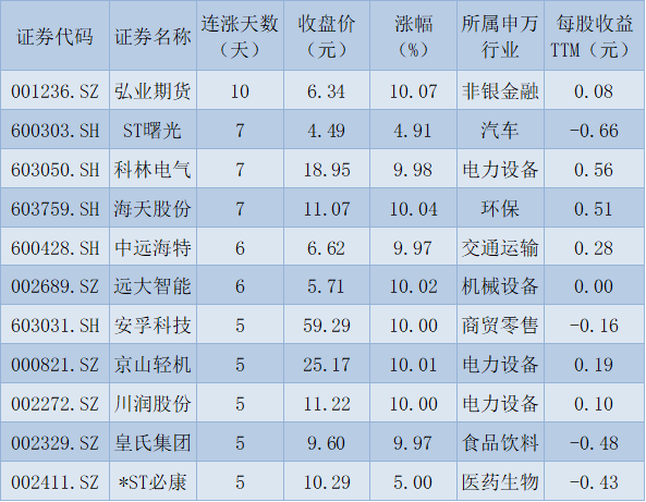 表:連續(xù)上漲5天且今日收盤漲停股一覽