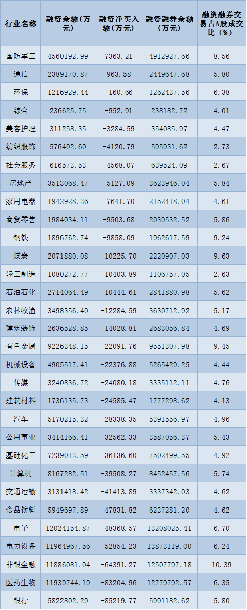 表:9月9日申萬(wàn)一級(jí)行業(yè)兩融交易情況: