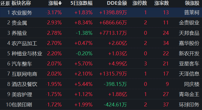 從漲幅居首的農(nóng)業(yè)服務(wù)行業(yè)看,截至9月13日11:30,行業(yè)交易中的15只個(gè)股有13只上漲,其中4只漲幅超5%。從資金流向看,該行業(yè)今天上午大單資金凈流入額達(dá)1398.89萬(wàn)元,居行業(yè)第33位。