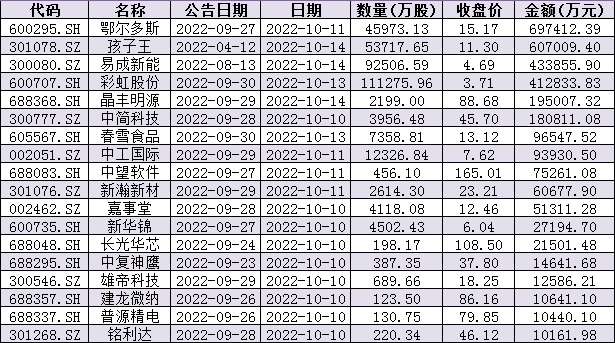 表:下周(10月10日-14日)解禁金額超億元的公司情況: