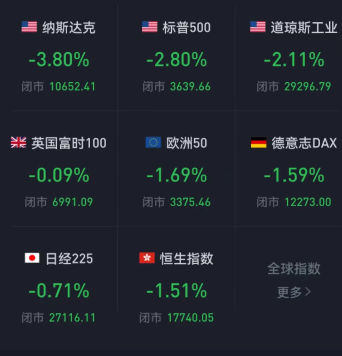 周五,美國三大股指全線收跌,道指跌2.11%報(bào)29296.79點(diǎn),標(biāo)普500指數(shù)跌2.8%報(bào)3639.66點(diǎn),納指跌3.8%報(bào)10652.41點(diǎn)。本周,道指漲1.99%,標(biāo)普500指數(shù)漲1.51%,納指漲0.73%。