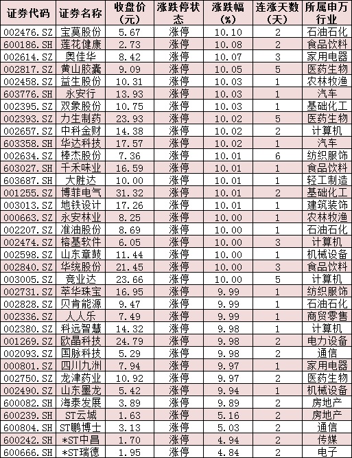 漲停板方面,10月10日,有35只個(gè)股漲停,其中,有7只漲停股,股價(jià)已連續(xù)上漲3個(gè)交易日以上。從行業(yè)方面看,計(jì)算機(jī)行業(yè)漲停股為4只。