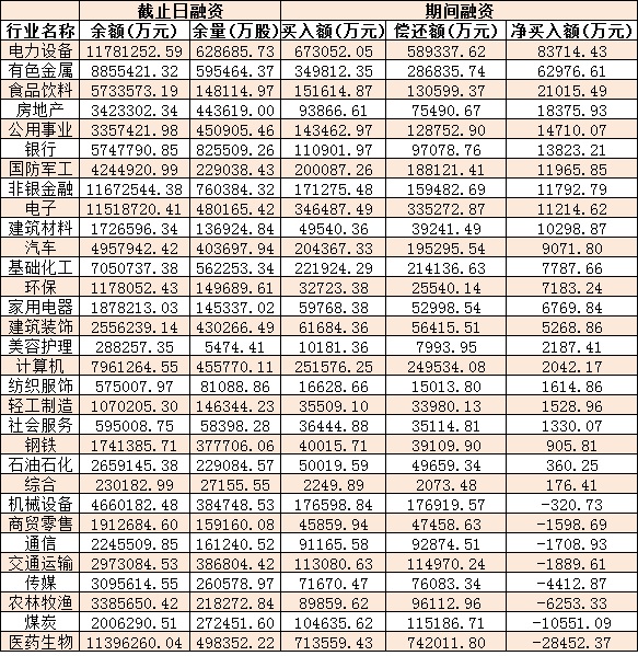 表:10月18日申萬一級行業(yè)兩融交易情況: