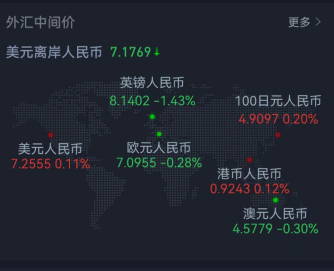 周五在岸人民幣兌美元16:30收盤報(bào)7.2703,較上一交易日漲497個(gè)基點(diǎn),本周累跌138個(gè)基點(diǎn);周五夜盤23:30收?qǐng)?bào)7.1927。人民幣兌美元中間價(jià)報(bào)7.2555,調(diào)貶83個(gè)基點(diǎn),本周累計(jì)調(diào)貶857個(gè)基點(diǎn)。交易員表示,市場(chǎng)體現(xiàn)出樂(lè)觀態(tài)度,供需狀況也在好轉(zhuǎn),短期人民幣或延續(xù)寬幅震蕩格局,人民幣進(jìn)一步貶值空間受限。