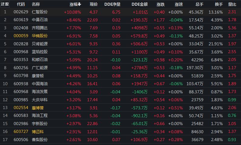 11月7日,石油石化行業(yè)漲幅居首,達2.38%。其中,仁智股份漲停。