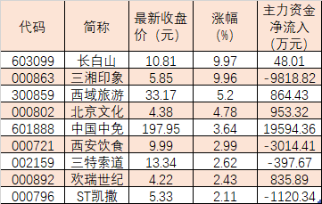 與此同時,部分旅游酒店股也獲得市場主力資金的青睞。11月16日,截至午盤,旅游酒店板塊內(nèi)有22只概念股呈現(xiàn)主力資金凈流入態(tài)勢,占比逾四成。其中,中國中免、宋城演藝獲主力資金凈流入均超千萬元,分別為19594.36萬元、4004.67萬元,北京文化、西安旅游、嶺南控股、西域旅游、華邦健康、歡瑞世紀、嶺南股份、麗江股份等8只個股主力資金凈流入也均超500萬元,這10只個股合計吸金3.01億元。