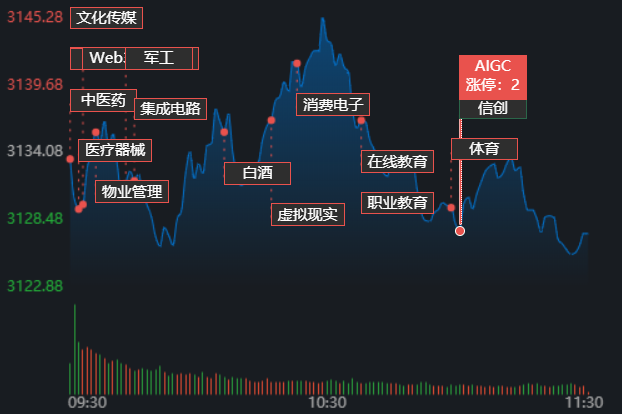 同花順行業(yè)方面,截至11月16日11:30,76類行業(yè)中35類上漲,占比46.05%,其中,教育漲幅居首,達3.03%。中藥跌幅居首,達1.68%。