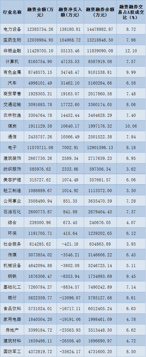 表:11月15日申萬一級行業(yè)兩融交易情況: