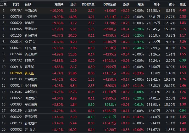 11月24日,房地產(chǎn)行業(yè)漲幅居首,達(dá)1.85%。其中,ST泰禾、中交地產(chǎn)、中國武夷、新華聯(lián)等4只地產(chǎn)股集體漲停。