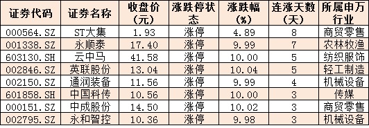 表:連續(xù)上漲3日且今日收盤漲停個(gè)股情況: