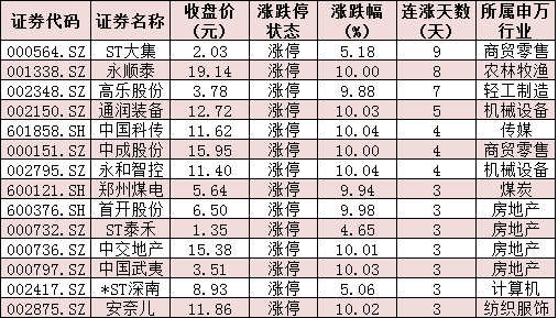 表:連續(xù)上漲3日且今日收盤(pán)漲停個(gè)股情況: