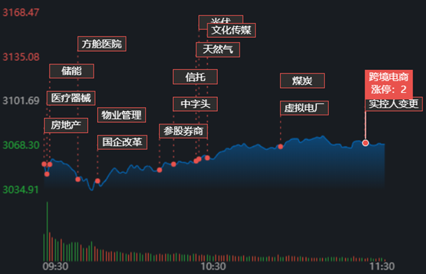 11月28日早盤,A股市場三大指數(shù)低開后逐步震蕩走強(qiáng)。截至上午11:30,上證指數(shù)跌1.03%,報(bào)3069.66點(diǎn);深證成指和創(chuàng)業(yè)板指跌幅分別為1.05%和1.12%;滬深兩市合計(jì)成交額5008.2億元??傮w來看,A股市場個(gè)股漲少跌多,有42只個(gè)股漲停,跌停股4只。