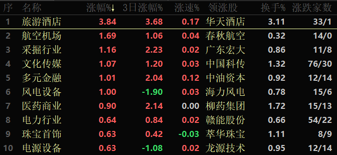 東方財(cái)富行業(yè)方面,截至11月28日11:30,86類行業(yè)中18類上漲,占比20.93%,其中,旅游酒店行業(yè)漲幅居首,達(dá)3.84%,航空機(jī)場(1.69%)與采掘行業(yè)(1.16%)居第二和第三位。銀行跌幅居首,達(dá)1.86%。