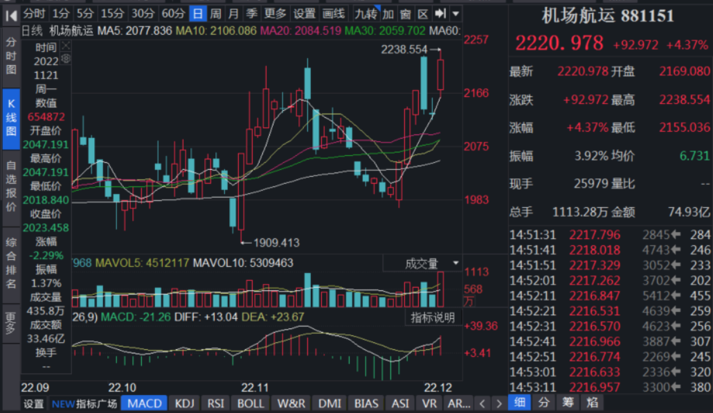 黑崎資本創(chuàng)始合伙人陳興文告訴記者,“機(jī)場航運(yùn)板塊近三年受到疫情沖擊,目前正面臨估值重塑。隨著疫情防控政策持續(xù)優(yōu)化,對機(jī)場航運(yùn)板塊的多頭情緒開始升溫,有望迎來上行修復(fù)行情。”
