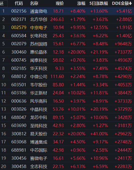 從早盤資金流向看,半導(dǎo)體及元件行業(yè)大單資金凈流入額達(dá)19.98億元,居首,此外,醫(yī)藥商業(yè)和計(jì)算機(jī)應(yīng)用大單資金凈流入額均超6億元。資金流入居首的半導(dǎo)體及元件行業(yè)交易中的173只個(gè)股,有150只上漲,其中20只漲幅超5%。