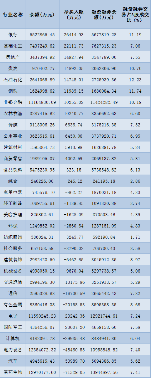 表:12月19日申萬(wàn)一級(jí)行業(yè)兩融交易情況: