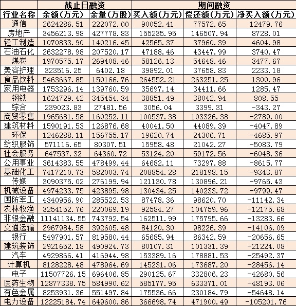 表:12月22日申萬(wàn)一級(jí)行業(yè)兩融交易情況: