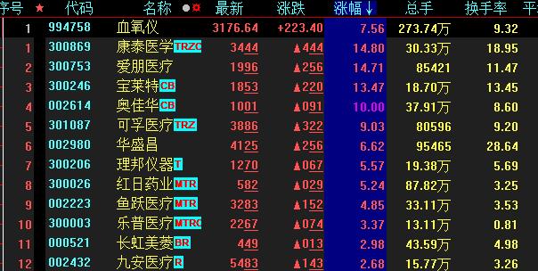 具體看,截至12月28日上午收盤,血氧儀板塊表現(xiàn)搶眼,漲幅達7.56%。其中,康泰醫(yī)學、愛朋醫(yī)療、寶萊特、奧佳華等概念股漲幅均在10%及以上。