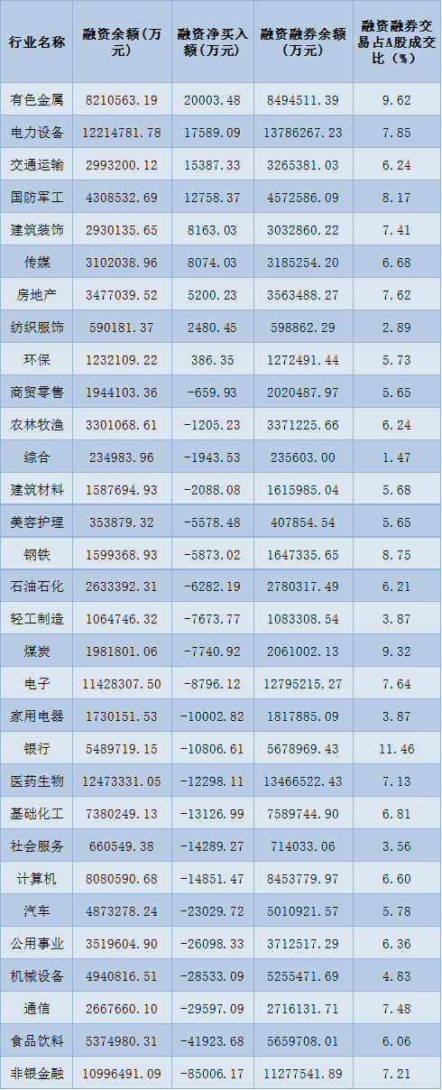 表:1月6日申萬(wàn)一級(jí)行業(yè)兩融交易情況: