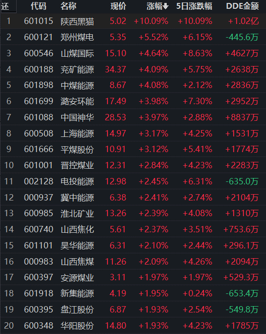 對于早盤表現(xiàn)強(qiáng)勢的煤炭開采加工行業(yè),中泰證券認(rèn)為,全球煤炭貿(mào)易再平衡大背景下,澳煤進(jìn)口放開對國內(nèi)供給沖擊有限,進(jìn)口能否持續(xù)放量有待進(jìn)一步跟蹤驗證。當(dāng)前煤炭需求仍然是板塊投資的主要矛盾,伴隨經(jīng)濟(jì)刺激政策持續(xù)發(fā)力,煤炭需求向好趨勢更加明確。疊加中國神華上調(diào)最新一期外采煤炭價格,需求已經(jīng)出現(xiàn)明顯回暖跡象,價格筑底接近完成,看好后續(xù)煤炭板塊行情。在增產(chǎn)保供大背景下,中長期合同制度日益強(qiáng)化,供需結(jié)構(gòu)性錯配更加凸顯,煤價易漲難跌。同時,“迎峰度冬”旺季將臨,下游電廠負(fù)荷有所增長,疊加焦鋼利潤修復(fù),下游補(bǔ)庫需求帶動焦煤價格上漲,行業(yè)基本面依然強(qiáng)勁。板塊調(diào)整之后,煤炭股高現(xiàn)金流、高分紅、低估值以及需求復(fù)蘇下的高彈性,攻守兼?zhèn)洌渲脙r值更加突出。三大利好催化:1)房地產(chǎn)融資三支箭已經(jīng)射出,地產(chǎn)復(fù)蘇支持政策不斷,煤炭下游鋼鐵、建材需求不悲觀;2)冷空氣來襲,電煤消耗進(jìn)入去庫階段,疊加全球能源危機(jī)下煤氣聯(lián)動,能源價格高位震蕩;3)2023年中長期合同落地遲遲不下,困難程度超乎想象,負(fù)面預(yù)期邊際修復(fù)。