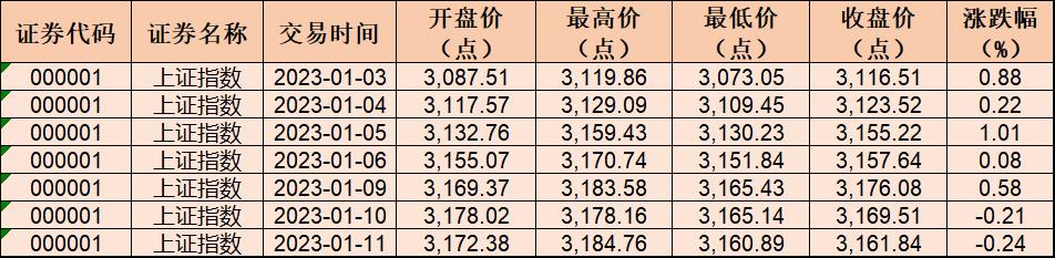 表:近7個交易日上證指數(shù)表現(xiàn)一覽