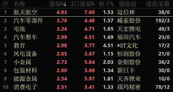 東方財(cái)富行業(yè)方面,截至1月30日11:30,86類行業(yè)中80類上漲,占比93.02%,其中,航天航空行業(yè)漲幅居首,達(dá)4.93%,此外,汽車零部件和電池行業(yè)漲幅也超過(guò)3%。下跌方面,航空機(jī)場(chǎng)行業(yè)跌幅居首,達(dá)1.28%。
