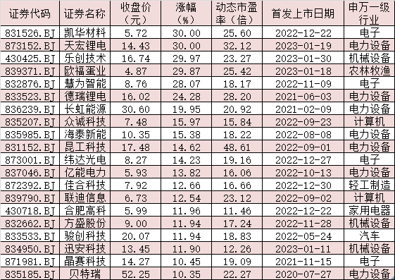 表:1月31日漲幅超10%的北交所個股