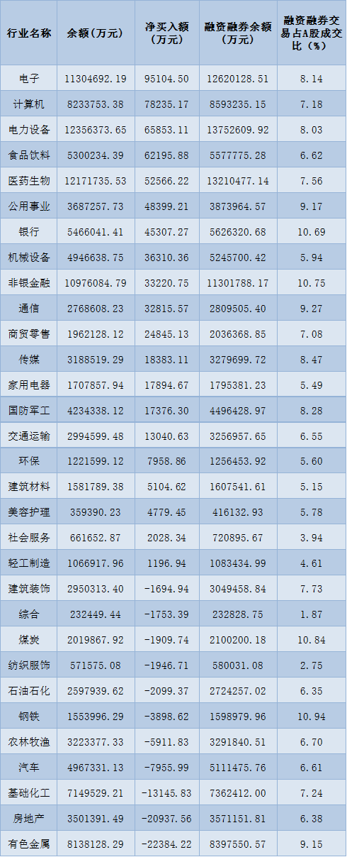 表:1月31日申萬(wàn)一級(jí)行業(yè)兩融交易情況: