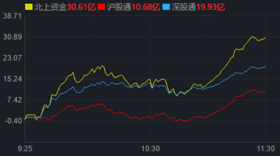 從資金面來(lái)看,2月1日上午,北上資金凈買入金額達(dá)30.61億元,其中,滬股通凈買入10.68億元,深股通凈買入19.93億元。