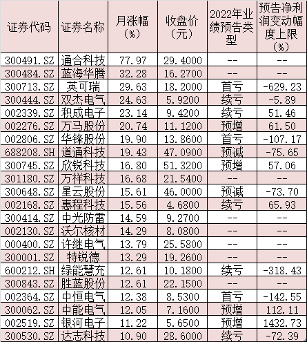 表:月內(nèi)累計(jì)漲幅超10%的高壓快充概念股