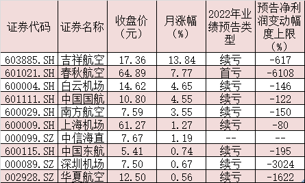 表:月內(nèi)股價(jià)實(shí)現(xiàn)上漲的機(jī)場(chǎng)航運(yùn)股一覽