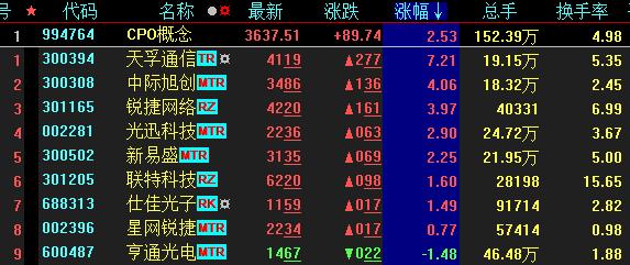具體看,截至2月24日上午收盤,CPO(共封裝光學(xué))概念走強(qiáng)板塊表現(xiàn)搶眼,漲幅達(dá)2.53%。其中,天孚通信漲幅達(dá)7.21%。