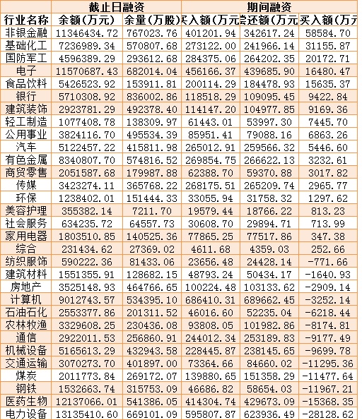 表:2月23日申萬一級(jí)行業(yè)兩融交易情況: