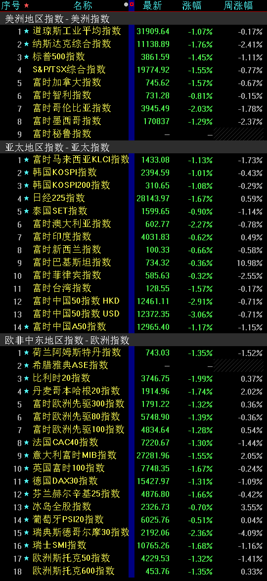 華西證券表示,本周美股市場回調(diào)幅度較大,周內(nèi)和日內(nèi)波動加劇。目前標普500席勒市盈率為29.71倍,仍明顯高于歷史平均數(shù)和中位數(shù)。由于美股估值壓力未充分消化,美國企業(yè)盈利下行的壓力仍然存在,且金融系統(tǒng)端的潛在壓力增加,疊加美聯(lián)儲的加息進程還將延續(xù),預計未來一段時間美股大盤仍將出現(xiàn)進一步回調(diào)??紤]到金融系統(tǒng)端的壓力上升,美股金融股未來一段時間可能波動趨于加劇。此外,多數(shù)美股成長行業(yè)和價值行業(yè)將會面臨進一步壓力。建議現(xiàn)階段暫時對美股市場采取偏謹慎的觀望態(tài)度。本周歐洲多數(shù)市場出現(xiàn)回調(diào)??紤]到美股回調(diào)壓力的聯(lián)動因素,疊加歐洲經(jīng)濟趨于進一步疲軟且流動性趨于進一步收緊,未來一段時間歐洲多數(shù)重要市場指數(shù)還將出現(xiàn)回調(diào);前期回調(diào)幅度不夠充分的德國DAX、法國CAC40、英國富時100、意大利富時MIB等歐洲多數(shù)重要市場指數(shù)容易出現(xiàn)進一步的明顯補跌。此外,加拿大S&P/TSX綜合指數(shù)、澳洲標普200、日經(jīng)225等發(fā)達市場還將出現(xiàn)波動??紤]到經(jīng)濟仍存在一定壓力,且美聯(lián)儲加息進程還在推進,一些拉美、東南亞等海外新興市場股債匯市場還將受到一定沖擊。